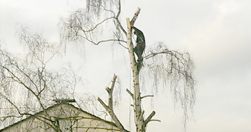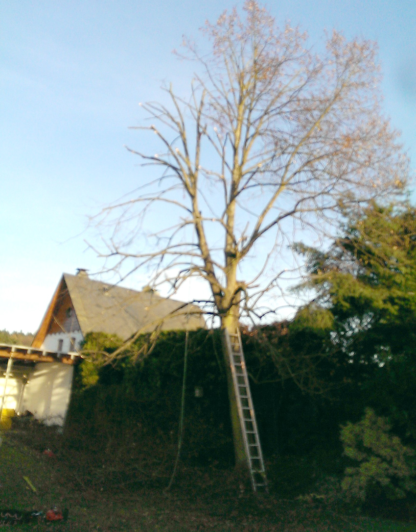 Hier bieten wir natürlich die Fällung sowie Entsorgung an, auch wenn es einmal problematisch ist, dank Seilkletter-Technik oder mit dem Steiger.